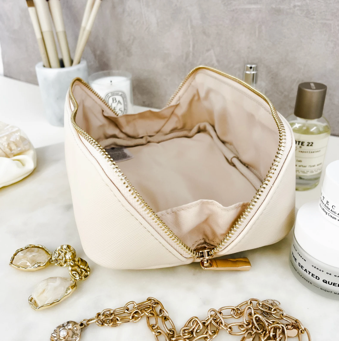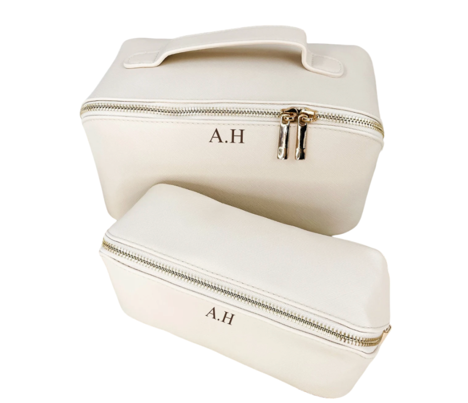Gorgeous make up bag which lays flat to help you find exactly what you're looking for. Personalised with whatever name or initials you would like to add to it. Can be blind embossed, silver or gold embossed.